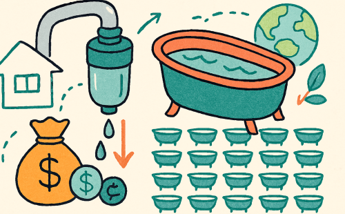 それって、家族で温泉旅行に100回行ったくらいの水量だよね(笑)。しかも、水道代も年間で3,000〜6,000円くらい浮くっていうんだから、これはもう“節約の湯”だよ。